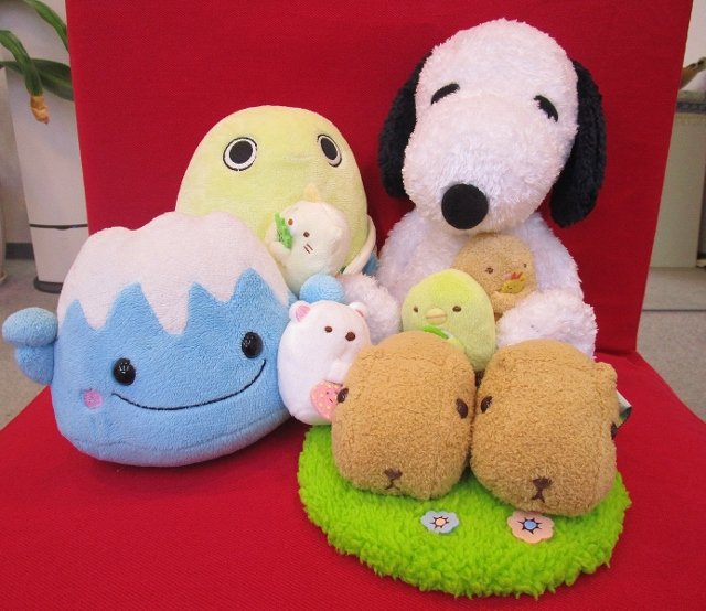 このブログにも時々登場していて、お店に遊びに来てくださった方は、皆さんご存知の“きもの白”で楽しく生活しているまゆまろ君とふじさん君、それにスヌーピーちゃんにかぴちゃん。