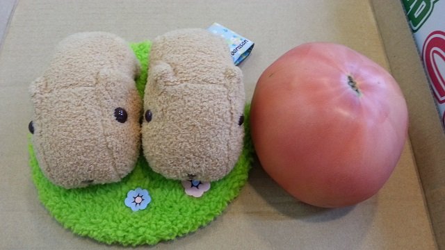 どのくらい大きいかな?ということで、比較対照として白にいるまゆまろくんとカピバラさんで比べてみました!!