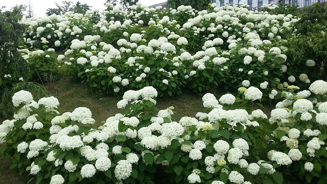 この間のお店のお休みの日にそのプレゼントを選びに行ったショッピングモールの周辺にたくさんの紫陽花さんが植えられていました。