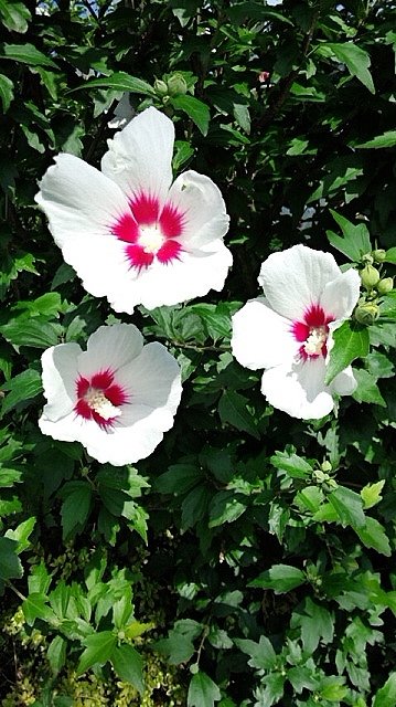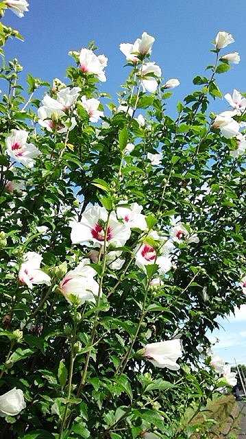 今日のプーさん店長さんとりきちゃん、ぎんちゃんのお散歩から届いたのは木槿の写真です。お花の白と赤、葉の緑のコントラストが夏の訪れを知らせに来てくれているようですね。
