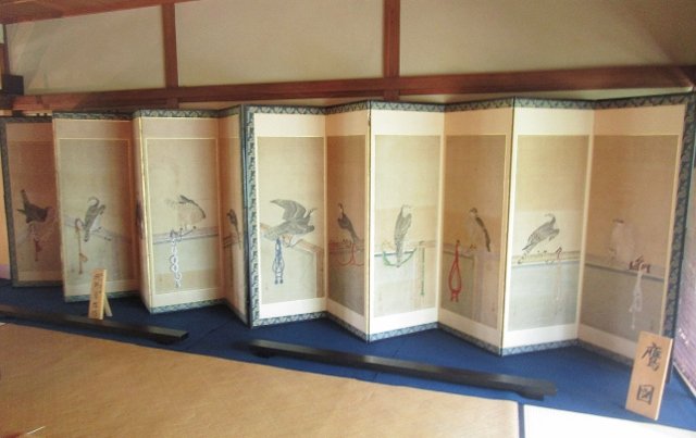Today, I introduce this beautiful hawk’s folding screen which is displayed in Kondayagenbei.