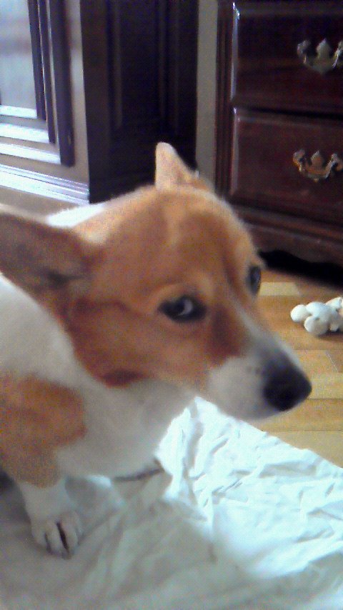 そのお宅のかわいいコーギーのきんぎょちゃんを激写させて頂きました。あんまりカメラは好きじゃないとの事で、なかなかこっちを見てもらえず、悪戦苦闘の中で、取れた写真です。15歳なので、おばあちゃん的な年齢みたいですが、お出迎えしてくれる時は、ぴょんぴょんと跳ねながら玄関まで来てくれるんですよ。そして、きれいな毛並みなので、年齢不詳な感じなんですよね。もう一枚は、ちょっと流し目で色っぽい感じです!!