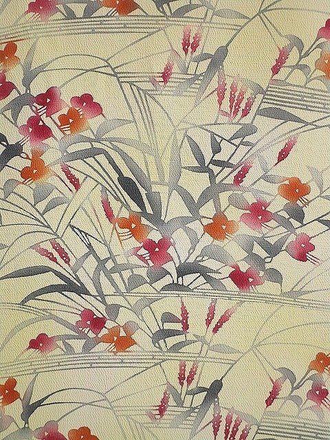 つゆ草と吾亦紅が柄のメインになっているので、秋にお召いただくのがおすすめです♪