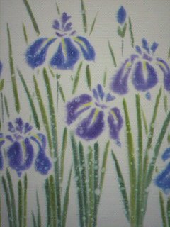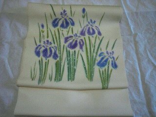 無線友禅で描かれた菖蒲柄の名古屋帯をご紹介します。