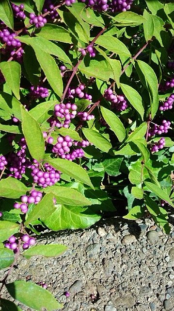 今日のプーさん店長さんとりきちゃん、ぎんちゃんのお散歩から届いた写真は“小紫”です。紫式部を全体的に小さくした感じで、実のつき方がちょっと違うようですが、結構わかりにくいので、多分小紫と言う事にしておいてくださいね。