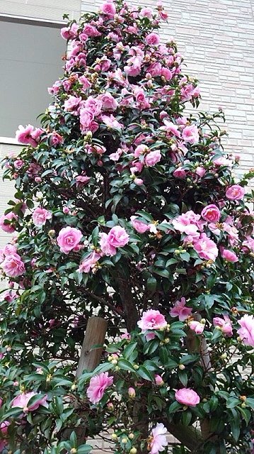 ゆっくりお散歩から届いた写真は毎年ご紹介しているこのタワー!!クリスマスツリーのようなピンクの可愛い山茶花です♪