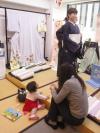 大きな鏡には、小さなお子様は興味津々です。(小学生くらいのお子様の場合は、本を読んだり、宿題などを一緒にしたりさせて頂いてます。)