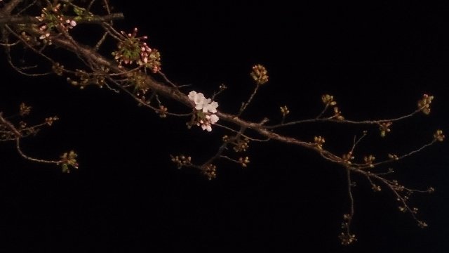 だいぶ前に開花宣言したはずの東京。でも、うちの地元の桜はずっと固いつぼみのまま・・・。と寂しく思っていたら、帰り道で発見!!