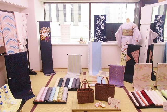 手前には、単衣におすすめのお召などがずらっと並んでます。