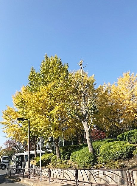 プーさん店長さんと、りきちゃん、ぎんちゃんのお散歩は雨が降っていたみたいです。でも、今日届いた写真は1日遅れの爽やかな秋晴れの青空と紅葉し始めた銀杏の木です。最近は紅葉の始まりが11月後半になってきていましたが、今年はしっかり紅葉が始まってますね。