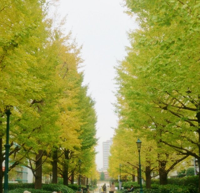 一部落葉が始まっていますが綺麗なイチョウ並木に遭遇♪