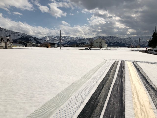 雪の上に整列した反物たち。何とも面白い光景です。バックの雪山と青空も美しかったです。ここ田んぼなんですが、私やっちゃいました・・・。膝上ぐらいまでズボッとはまる。そして助けてくれようと思って着て下さった問屋の女性も私を引っ張りながらはまる・・・。ちょっと面白かったので写真撮ってもらえばよかったなぁと。(その時はビックリしすぎて、そんな余裕はなかったですが)