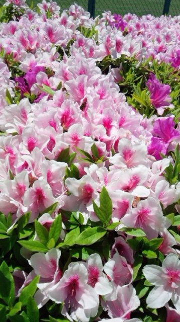 プーさん店長さんバースデーも、りきちゃん、ぎんちゃんと朝のお散歩です。今日届いた写真は満開のつつじ。薄いピンクと内側の濃いピンク、そして葉のグリーンがとっても綺麗です。