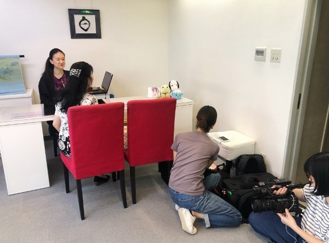 先日から、このブログでもご案内している着物から日傘をつくりませんか?ですが、その取材があるという事で、お店を貸し出し!!