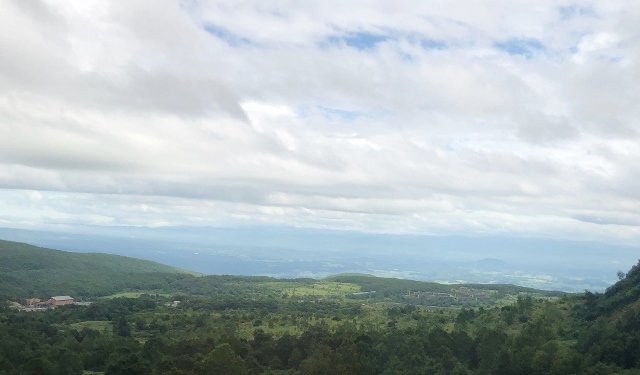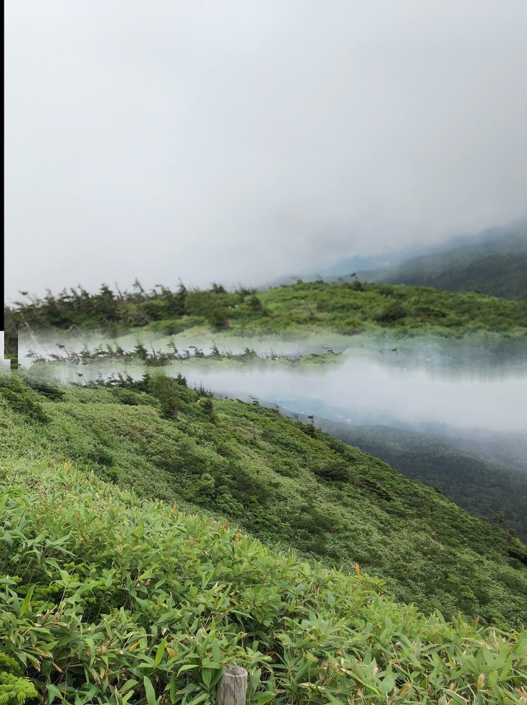 東京の暑さがウソのような気持ちい気候で、外に立っているだけだと少し肌寒い位の気候でした。秋田側は綺麗に晴れて遠くまでよく見えて広々とした景色。岩手側は少し雲が下りてきて山間の雲海が素敵でした。