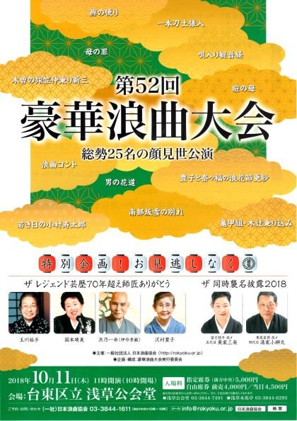 富士路子さんは日本浪曲協会会長、東家若燕さんは同協会理事の要職を勤めながら、芸の精進を重ねられ、浪曲界の諸先輩や関係各位の賛同を得て浪曲界の大名跡であり、お二人にとって所縁のお名前を襲名する運びとなったそうです。