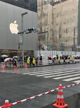 アップルストアの前、四丁目の交差点の和光の前をぐぐっと曲がっていきます。この時間は、トップランナーの人たちなので、とにかく早い。びゅーんとすごい勢いで走っていきます。