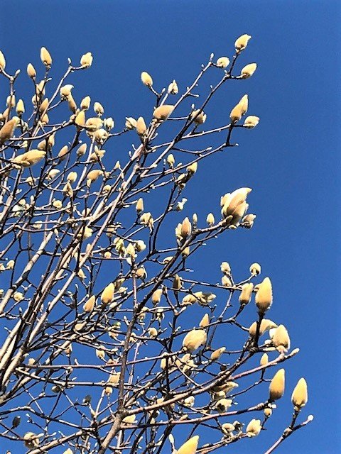 今日のプーさん店長さんとりきちゃん、ぎんちゃんのお散歩から届いた写真は〝木蓮〟です。ツンツンつぼみがいっぱいつき始めました。ぐっと寄ってみると、硬いつぼみがから少しだけお花がのぞいている子もいますね。