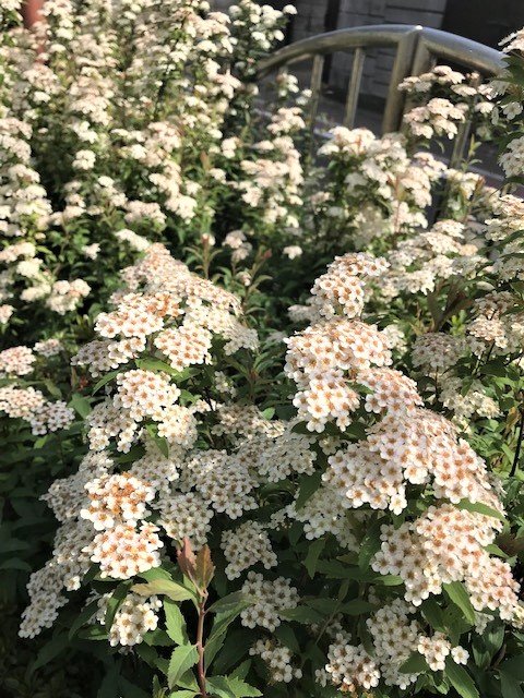 プーさん店長さんとりきちゃん、ぎんちゃんのお散歩から届いた写真は『コデマリ』です。小さな白いお花がまあるく集まっている姿が可愛らしいですね。