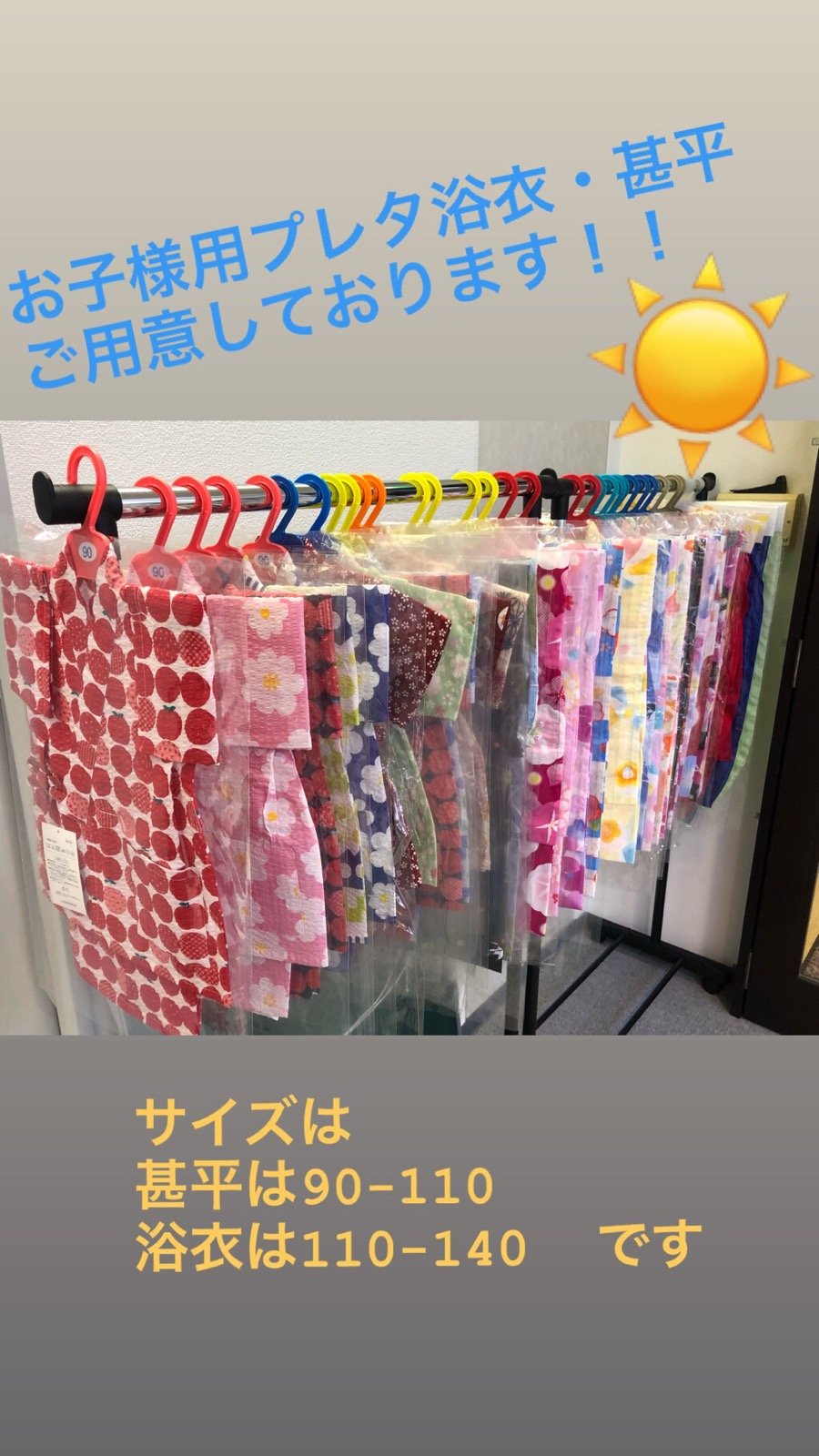 サイズは浴衣が100センチから140センチまで、