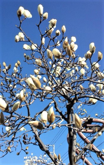 今日のプーさん店長さんとりきちゃん、ぎんちゃんのお散歩は、風が強くて、寒かったみたいですよ。今日届いた写真は『ハクモクレン』です。