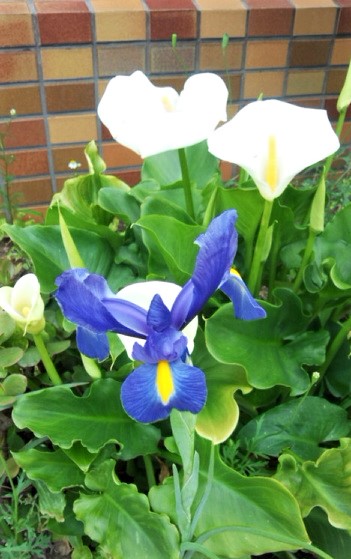 プーさん店長さんとりきちゃん、ぎんちゃんはしっかり対策をして、元気にお散歩です。今日届いた写真は『ダッチアイリスとカラー』です。