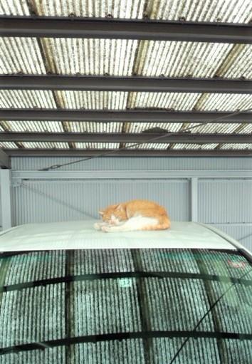 すやすや寝ている猫ちゃんの写真が、プーさん店長さんとりきちゃん、ぎんちゃんのお散歩から届きました。