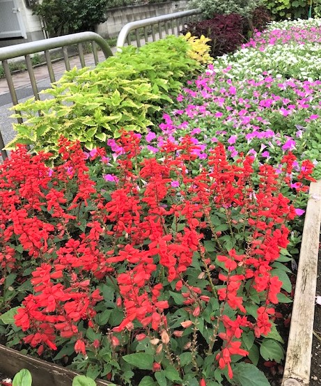 今日のプーさん店長さんとりきちゃん、ぎんちゃんのお散歩から届いた写真は『花壇いっぱいのお花』です。色とりどりのお花が咲き乱れる風景は心を癒してくれますね♪