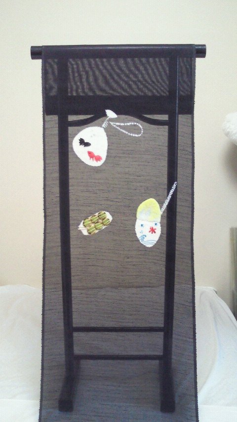 この帯も、絽紬の生地に絞りとアップリケで、夏を表現しています。