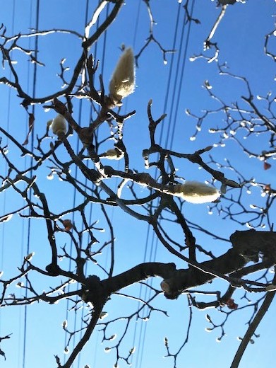 今日届いた写真は『木蓮』です。固いつぼみの皮が取れて、ほわほわの産毛が可愛いつぼみが顔を出しましたよ。