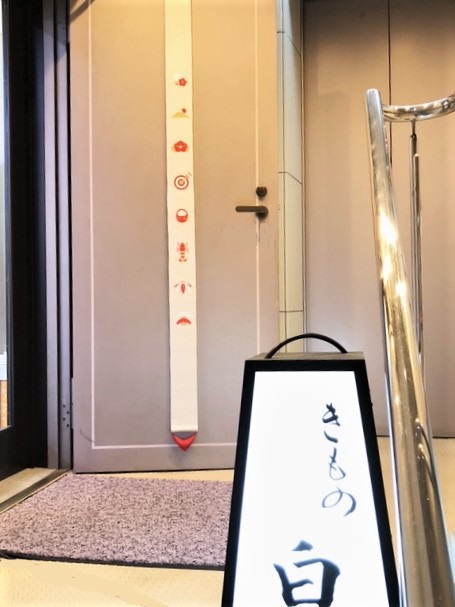新年らしくパトには黒留袖を着せてみましたよ。そして、入り口にはお洒落なタペストリーをかけました。