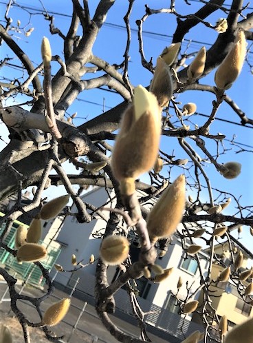 プーさん店長さんとりきちゃん、ぎんちゃんのお散歩も風に吹かれて寒いお散歩だったみたいです。今日届いた写真は『木蓮』です。かたいつぼみから、お花がチラッと顔を出しはじめました。満開が楽しみです。