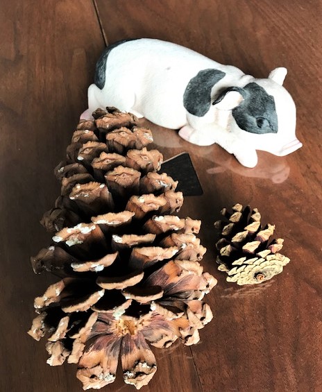 以前にご紹介した大王松(ダイオウショウ)の松ぼっくりをゲットしたみたいです。松のサイズにぴったりの⁉ビックサイズの松ぼっくりです。横にある小さいのが普通サイズの松ぼっくりです。