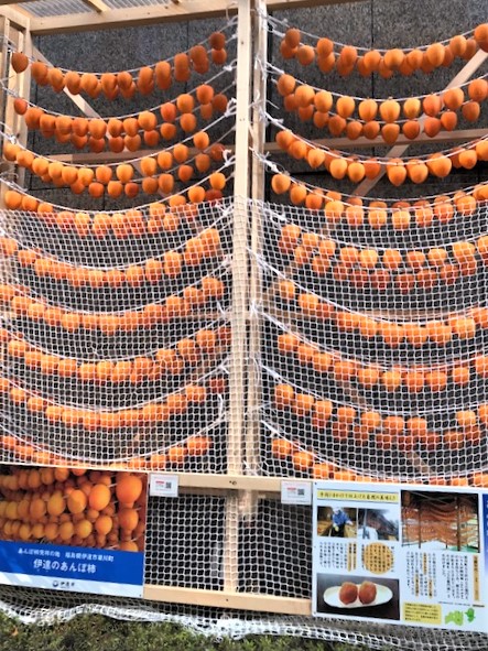 〝きもの白〟の目の前にあるフェニックスプラザの壁にあんぽ柿が干されています。昨年は中止になりましたが、今年はおいしそうな柿が干されていますよ♪福岡県伊達市と銀座はちみつプロジェクトのコラボのようです。