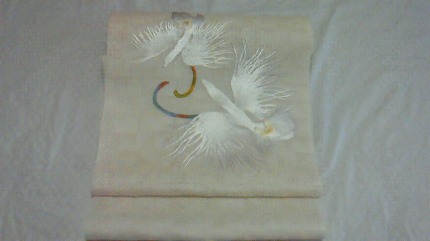 今日ご紹介する夏名古屋帯は、数日前にご紹介したひまわりの帯と同じ所で刺繍をして頂いた鷺草の名古屋帯です!鷺草の鷺が羽をひらいたようなふわっとした雰囲気が刺繍で素敵に表現されています。大き目に刺繍されているので、インパクトもありますよ。
