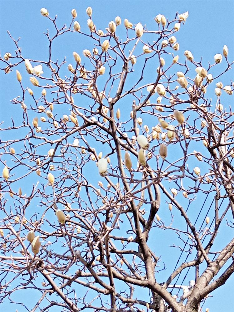 花粉症と無縁のプーさん店長さんとりきちゃん、ぎんちゃんは今日も元気にお散歩です♪今日届いた写真は『木蓮』です。木蓮の白いつぼみがふっくらとして、開花目前です。きれいなお花がいっぱい咲く春が待ち遠しいです!!