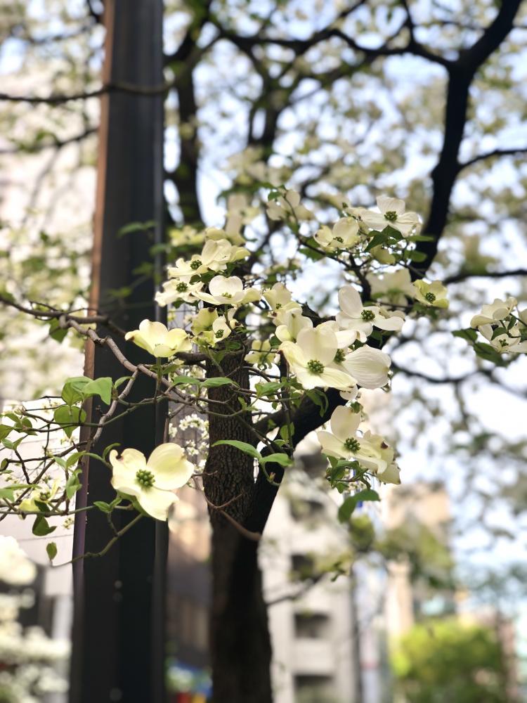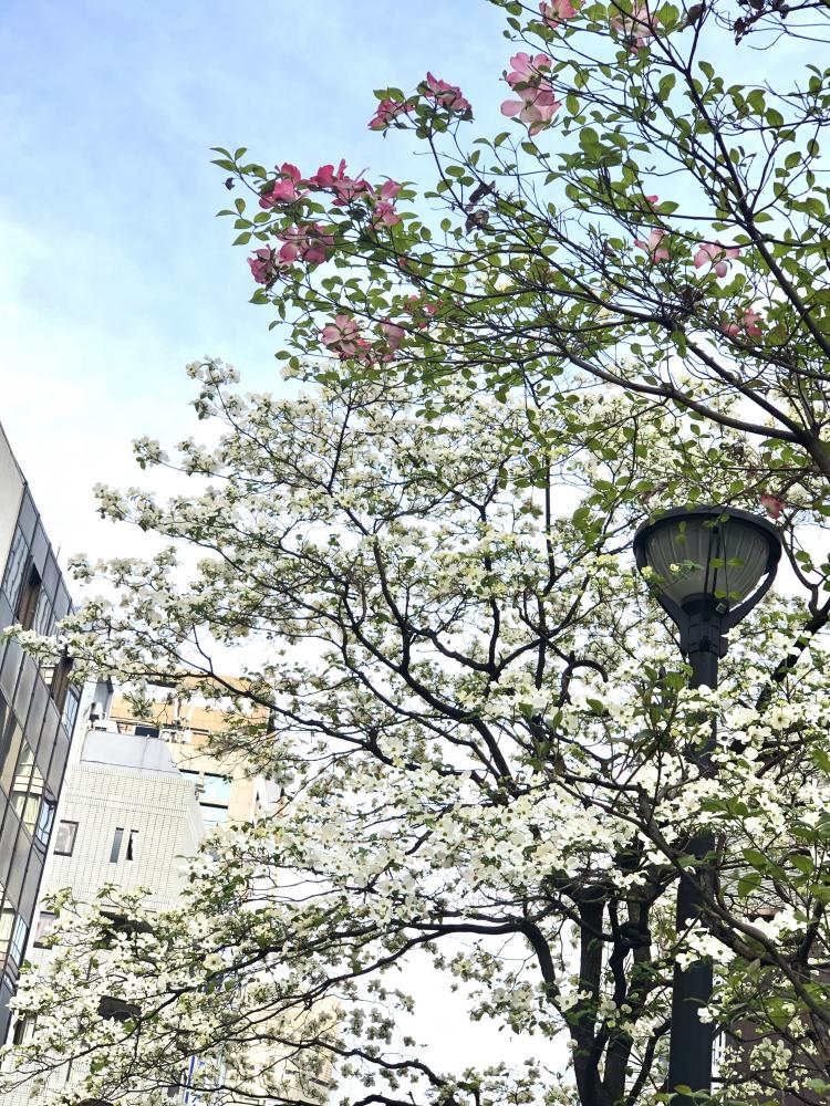 お店の前の通りのハナミズキが満開でとっても綺麗です。