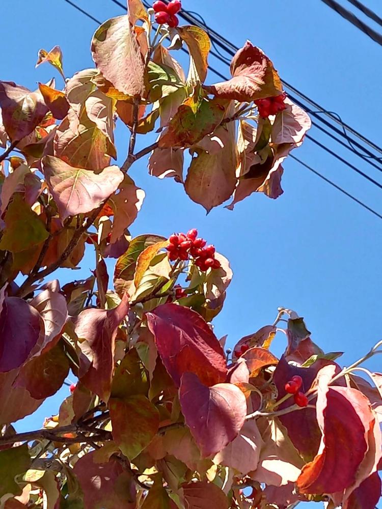 プーさん店長さんとりきちゃん、ぎんちゃんのお散歩も防寒が必要な季節になってきました。今日届いた写真は『紅葉したハナミズキ』です。赤い実がなっていて可愛らしいです♪
