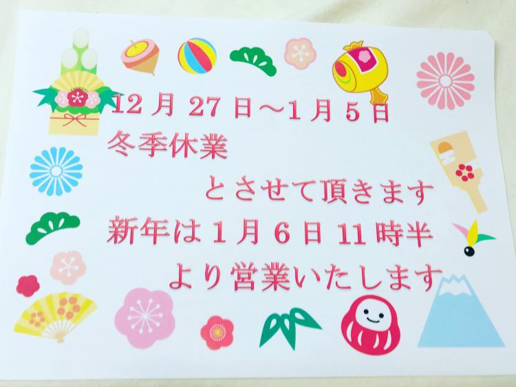 明日12月27日から1月5日まで冬季休業とさせて頂きます。