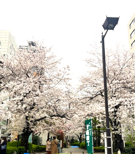 帰り道に隅田川渡りながらスカイツリーをパチリ♪そして、浜町で満開の桜もパチリ♪多くの人が写真を撮ってましたよ。写真をよく見ると奥の方でお花見をしている人たちと、大きなブルーシートで場所取りしている様子も。昨日は少し肌寒かったですが、桜が咲くと春が来た!!という気分になり、何とはなしに嬉しい気分になります。