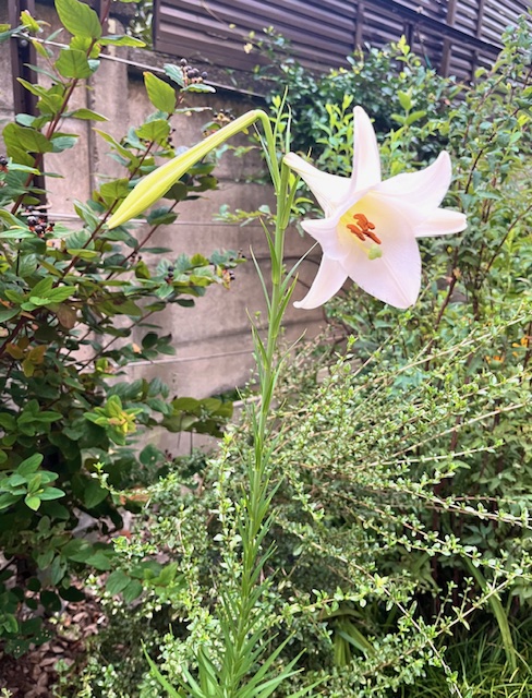 プーさん店長さんに負けず、ご近所のいつもお花が綺麗な花壇でパチリ♪してきました!テッポウユリだと思っていたのですが、調べてみたら『タカサゴユリ』というみたいです。お花が咲くと少し頭が重くなるのか、どんどんお辞儀をするように前へ前へ倒れてきちゃいます。