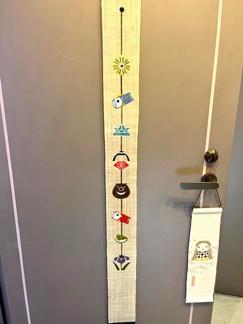 満開だった桜もそろそろ散り始めるところがチラホラという事で、端午の節句のタペストリーに替えました。ご来店いただいた際に入り口で皆様を金太郎さんやクマさん、こいのぼり達がお迎えいたします。