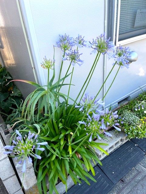 プーさん店長さんが定休日にお散歩に出かけた時の写真が届きましたよ。今日届いたのは『アガパンサス』です。すくっと伸びた姿が美しいお花です。