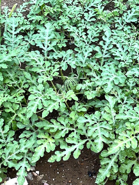これ、畑じゃないんです。住居の解体工事が終わったところに、なんとスイカ!!