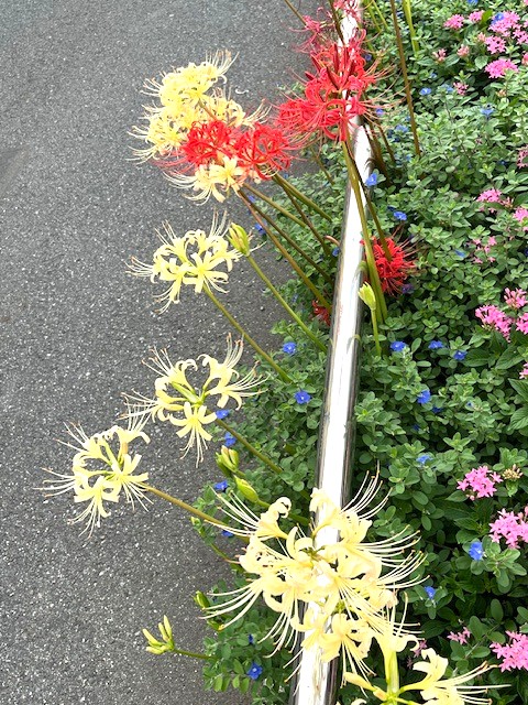 『曼殊沙華』です。このお花は彼岸花とも言いますし、日本各地では色々な呼び方をされていて1000種類以上の呼び名があるそうですよ。