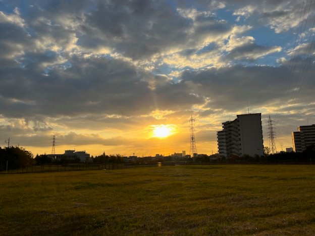 プーさん店長さんの朝のお散歩から綺麗な『朝焼け』の写真が届きました。空気が澄んできているので太陽さんの光が綺麗に見えますね。