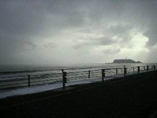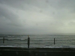 その帰りに海の近くを通ったので、少しどんより気味の空と分かりづらいですが、波が高めの海をパチリです!