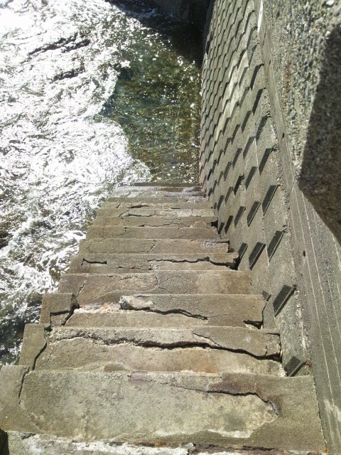 ちょっと海の近くを通ってみようという事で、通りがかったところで、不思議!?な階段を発見です。降りていくと砂浜などはなく、すぐに海!!手すりもないし、けっこう怖かったのですが、ちょっとだけ降りてパチリです。