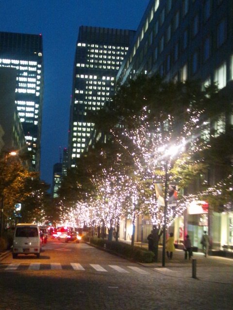 二枚目は、ジャパンシルクセンターの前の通りが17時になるとキラキラ開始したので、パチリです。ちょっと不思議なのてすが、一昨日は付いて、昨日はお休み。節電な感じで、一日おきなのでしょうか?