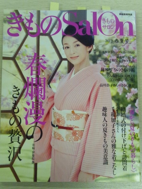 鈴木保奈美さんの素敵な着物姿が表紙になっているきものSalon2012春夏号に“きもの白”のお着物が掲載されました!!